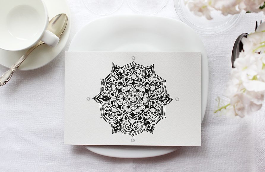 Hand-drawn mandala designs used in branding, wall art, invitations and more