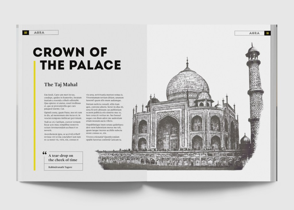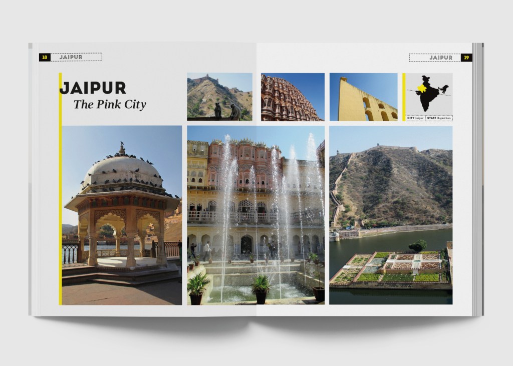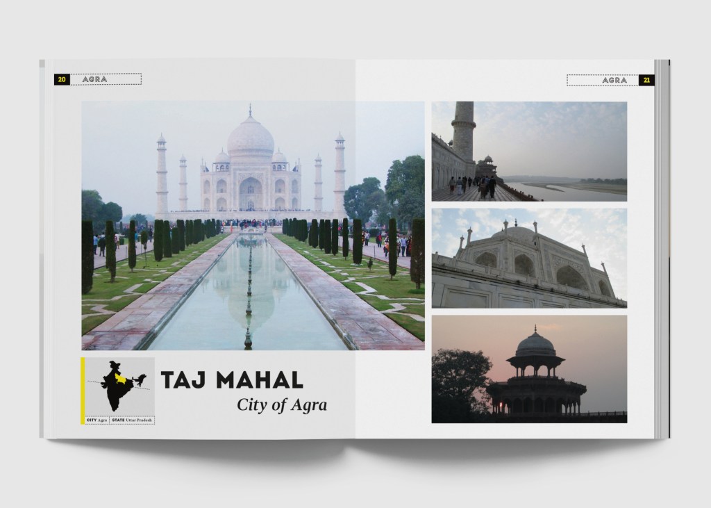 A colourful lookbook full of memories. Inspired by my travels in India, this project was designed to showcase my personal photography, illustrations and handmade, screen printed artwork. The cover image and Taj Mahal illustrations and mandala are my own artwork.